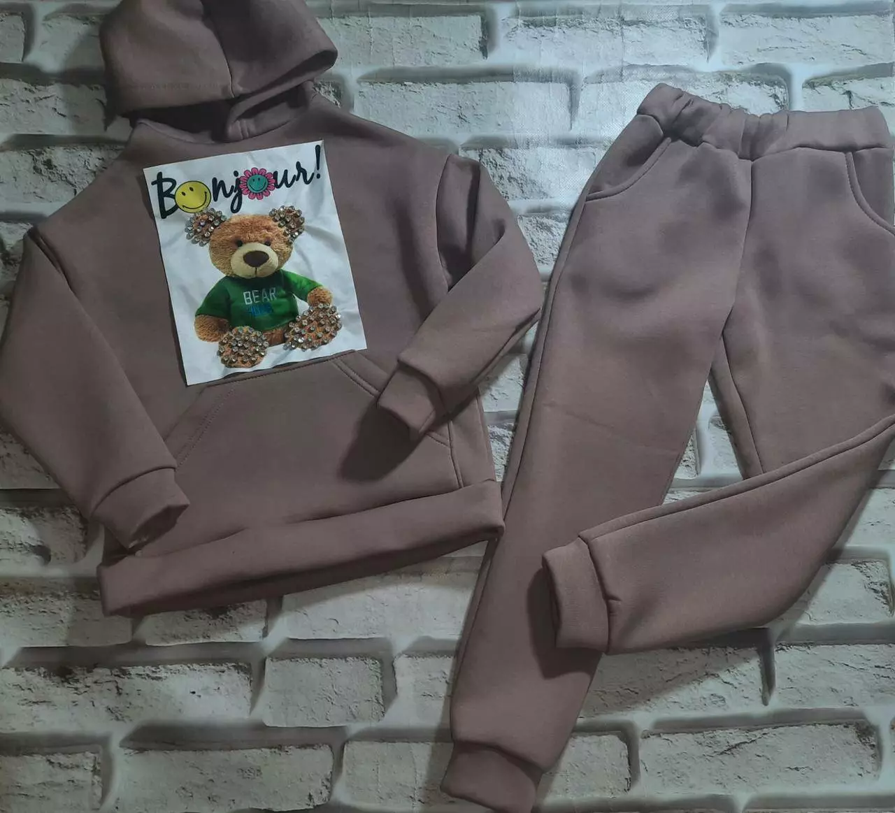 Дитячий спортивний костюм на дівчинку Колір бежевий "Ведмедик стрази" (Плотна, тепла тканина, не кашлатиться)