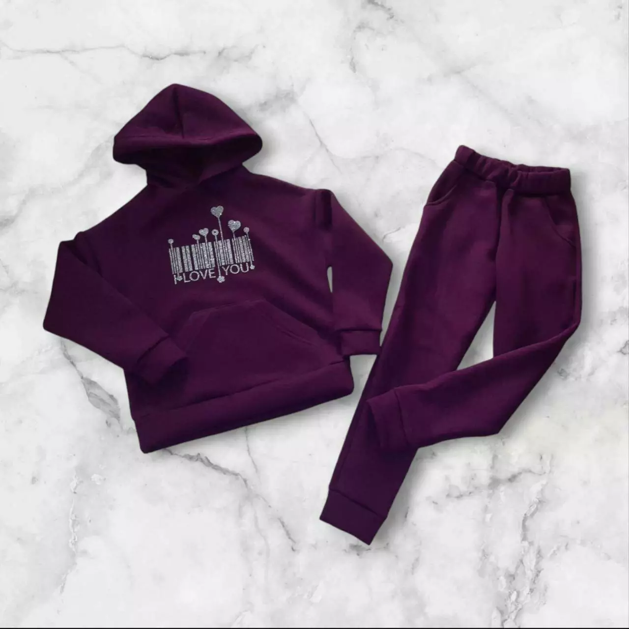 Дитячий спортивний костюм на дівчинку утеплений "I love you" Бордовий Зріст 104 см - 146 см