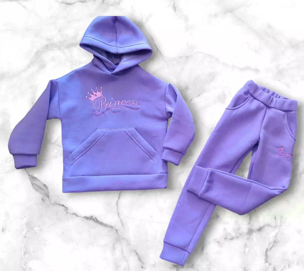 Дитячий спортивний костюм на дівчинку утеплений "Princess" Бузковий Зріст 104 см - 146 см