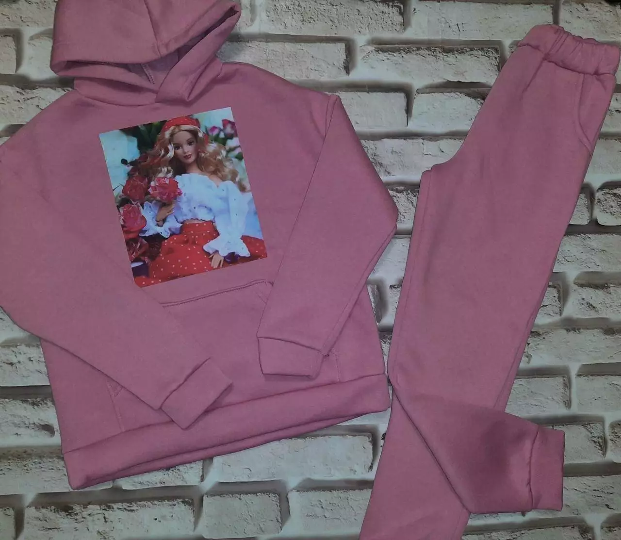 Дитячий теплий спортивний костюм на дівчинку колір рожевий (Плотна, тепла тканина, не кошлатиться) "Барбі"