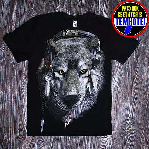 Футболка на хлопчика "Вовк світиться в навушниках". Світиться в темряві. 122-150 см .