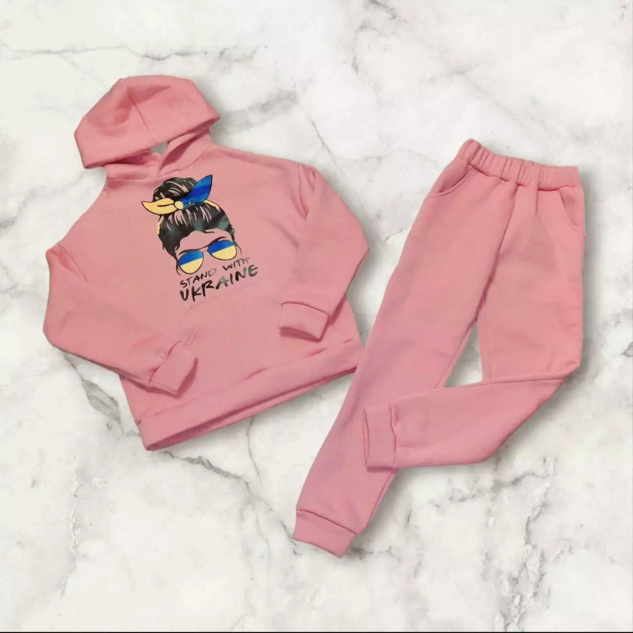 Спортивний костюм дитячий на дівчинку утеплений "Патріотичний" Зріст 134 см-146 см Колір :Пудровий