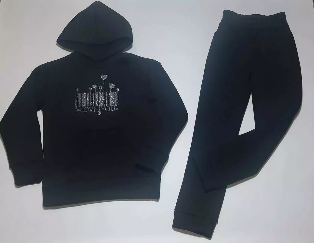 Спортивний костюм дитячий утеплений "I love you" колір чорний Зріст 122 см-146 см опт і роздріб