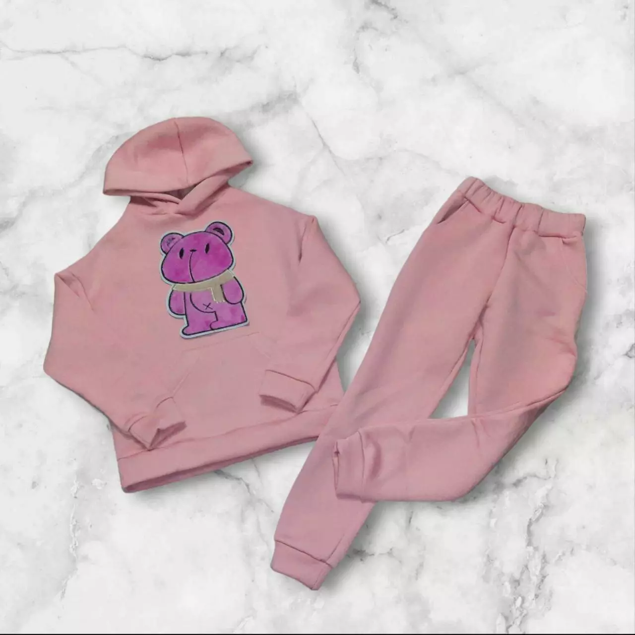 Спортивний костюм дитячий утеплений "Ведмідь №2" Колір пудра Зріст 134 см-146 см
